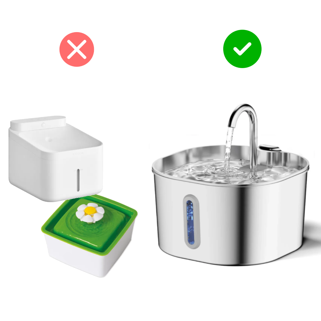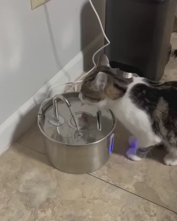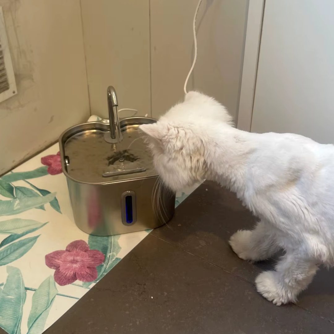- Atraktivní design napodobující přírodní proud: V souladu s přirozenou preferencí koček pít tekoucí vodu, naše nerezová kočičí fontánka povzbuzuje vaše mazlíčky, aby pily více a zůstaly dobře hydratované, čímž snižuje riziko onemocnění ledvin. Tekoucí voda zvyšuje hladinu kyslíku, což má za následek svěží a příjemnou vodu, kterou si váš mazlíček zamiluje.